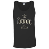 DOWN NOLA XXV Black Tank Top for men. This classic fit, preshrink tank top features a banded neck and armholes for increased durability, double needle bottom hem and tubular fit for minimal torque. It's made from 100% premium cotton. Care Instructions: Machine wash and tumble dry on low.